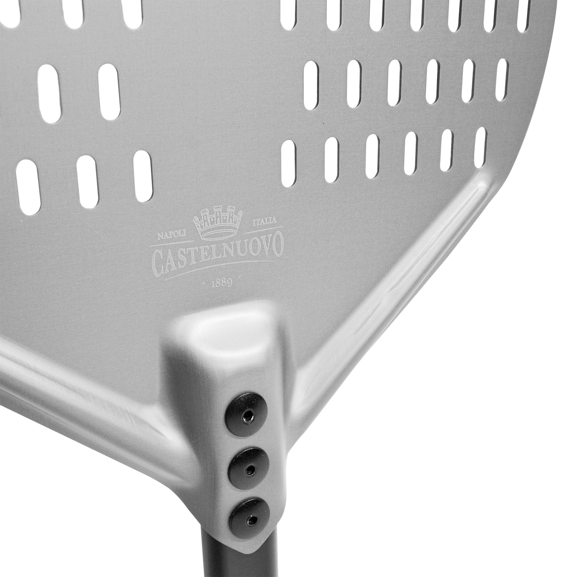 La Pala PRO para Pizza perforada es el utensilio esencial para cualquier pizzería o amante de la pizza. Esta pala está fabricada en aluminio anodizado de alta calidad, lo que la hace resistente y duradera. Su diseño perforado de 30x35 cm permite una cocción uniforme y crujiente de la pizza, evitando que se adhiera a la superficie. Además, su mango de aluminio negro de 25 cm de largo proporciona un agarre cómodo y seguro, permitiendo transportar la pizza del horno a la mesa sin riesgo de quemaduras o accidentes. La Pala PRO para Pizza perforada es ideal para pizzas de cualquier tamaño y grosor, y su perforación permite que el exceso de harina y la humedad se escapen, garantizando una pizza perfectamente cocida en todo momento. Con esta pala, podrás disfrutar de pizzas profesionales en la comodidad de tu hogar o negocio.