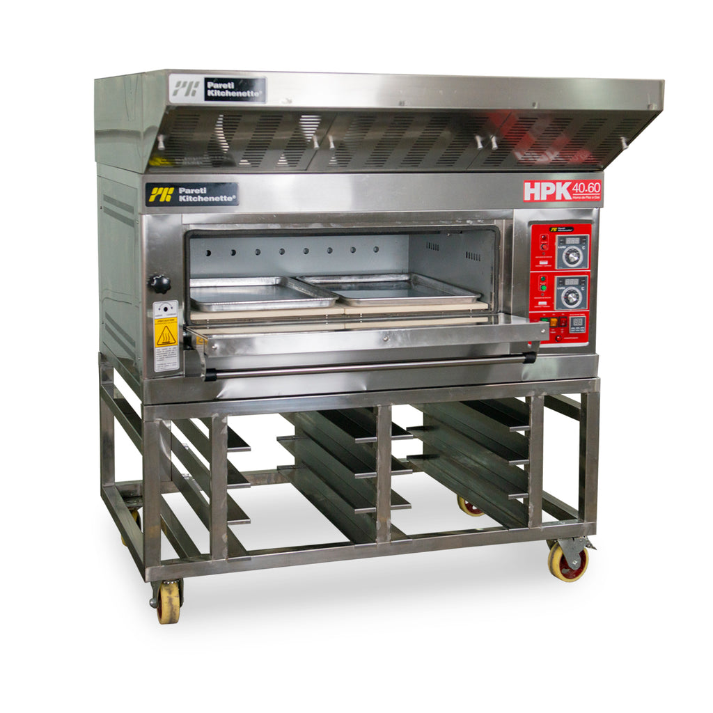 El horno de piso HPK1 4060 NEW de Pareti-Kitchenette® es un modelo tradicional chileno, llevado a su máxima expresión para satisfacer las necesidades de los panaderos más exigentes. Su diseño en acero inoxidable garantiza higiene, resistencia y durabilidad en entornos de alto uso.